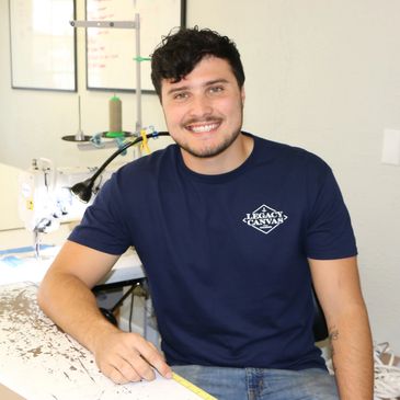 Ethan specializes in hand fitting canvas, refitting, and helping with the set up.